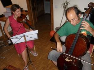 Here is an audio recording of the main section where the higher faster heartbeat is Diane playing Violin and the lower slower one is Sasha on Cello. Sasha and Diane chose to play Vivaldi’s Violin Sonata in G Minor, Movement 1.