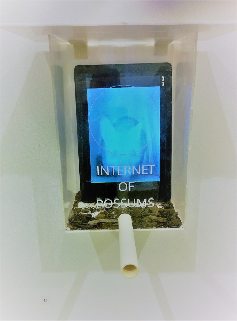 The installation was enhanced with footage from the wonderful Possum TV site, for the Beauties and Beasts exhibition at the Belconnen Arts Centre in May 2017.